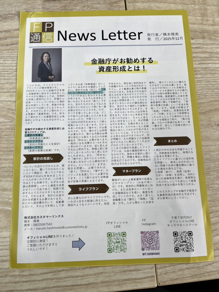 【掲載のお知らせ】ファイナンシャルプランナー橋本晴美さんの「FP通信」に心結の記事を掲載いただきました